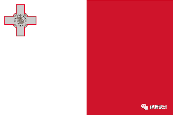 马耳他国旗左侧为白色,象征着纯洁,右侧为红色,象征着勇士的鲜血。国旗的左上角还有一枚银灰色乔治十字勋章图案,那是第二次世界大战期间,马耳他人民英勇作战,粉碎了德国、意大利的进攻,被英国国王乔治六世授予的。