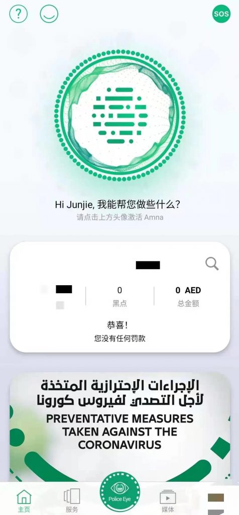 下载一个APP叫做DUBAI POLICE,这是中文版的,下载之后注册,选择中文语言。输入车牌号就可以直接查询违章,而且可以在线缴费。