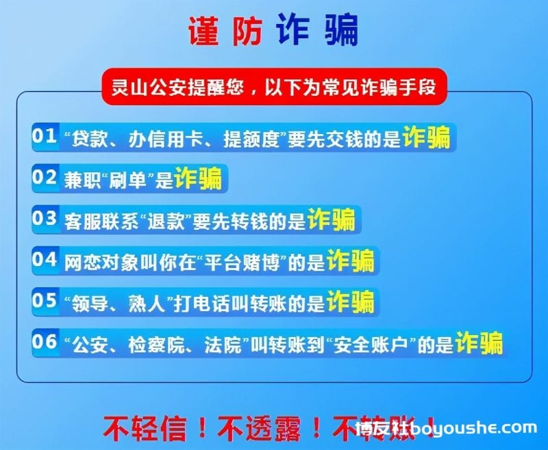 灵山公安提醒广大群众务必提高警惕,切勿轻信“赴缅甸打工”的招募信息。如遇此类招工信息,请及时向公安机关报警。公安机关坚决打击偷越国(边)境、电信网络诈骗、赌博等违法犯罪活动,请广大群众切勿参与。