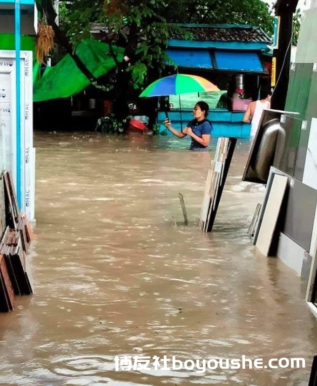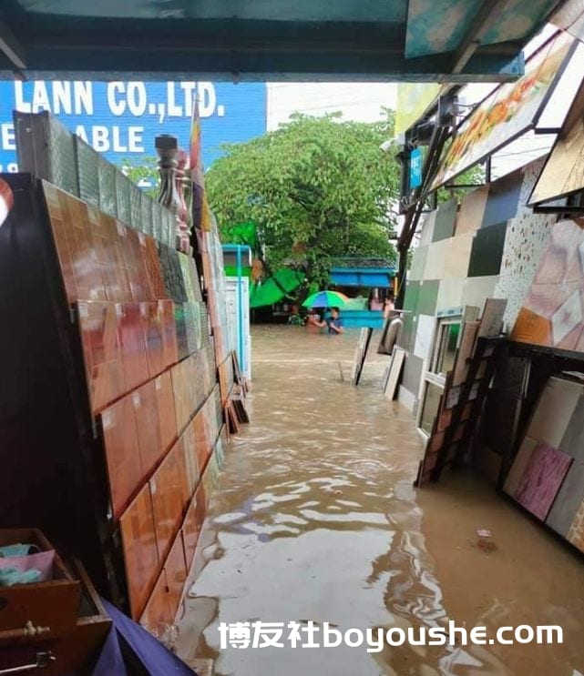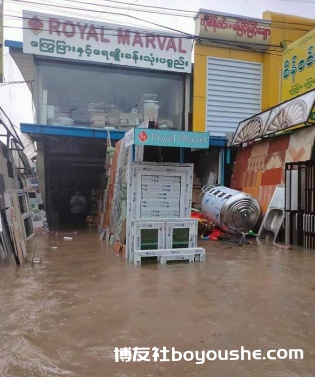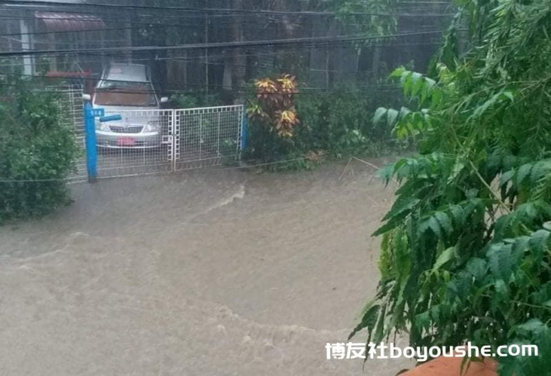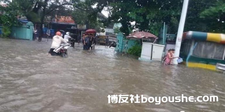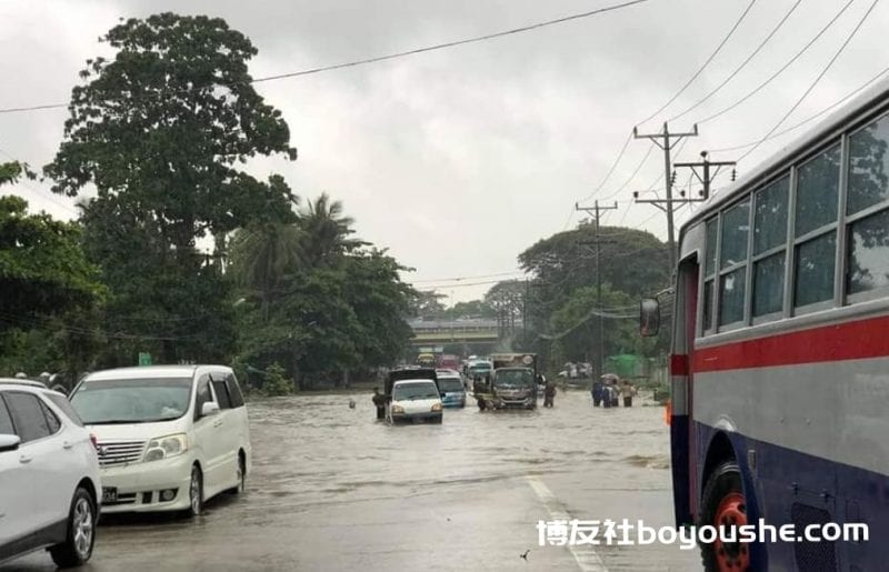 仰光消息,6月7日,仰光遭遇暴雨袭击,明加拉栋镇区、莱镇区、茵盛镇区、达梅镇区、导欧格拉巴镇区等多个镇区内,道路遭水淹没。
