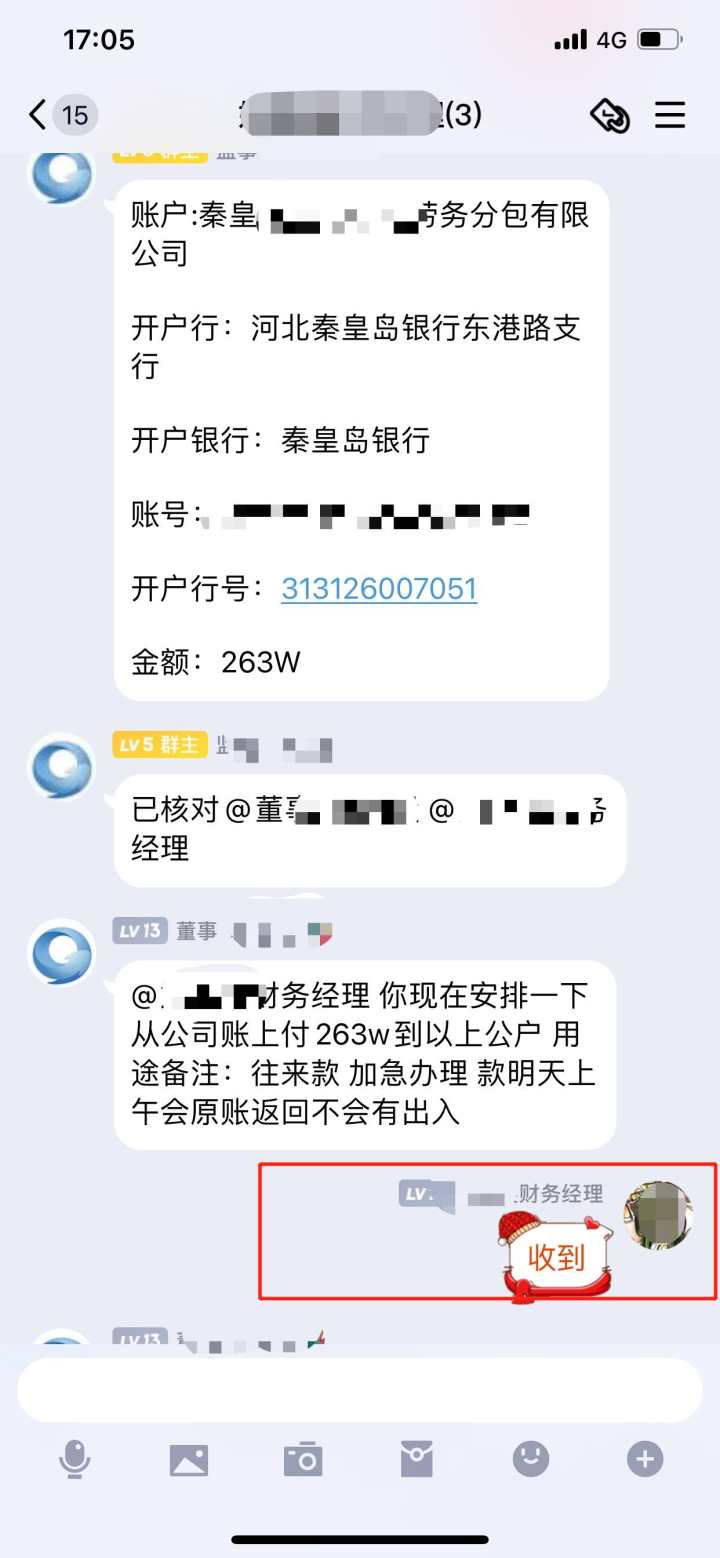 进群之后,“董事长”让“财务经理”查询公司账户,并要求“财务经理”向其指定账户转账236万。