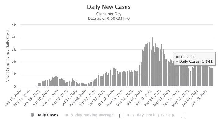 周四(7.15),阿联酋卫生和预防部宣布,在进行了284799次病毒检测之后,该国单日新增1541例感染病例,感染总数为656354例。