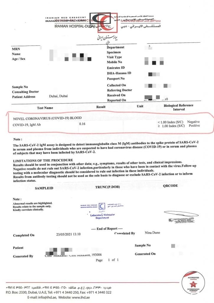 迪拜的检测机构应该检测的是IGM-S(Anti-Spike)蛋白。(见伊朗医院和G42报告标黄处)