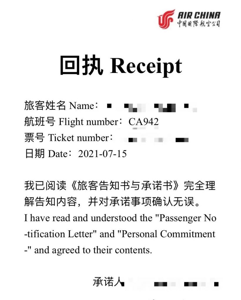 国航需要提前填写个回执单,到时候群内会发链接,填写后,回执长这样: