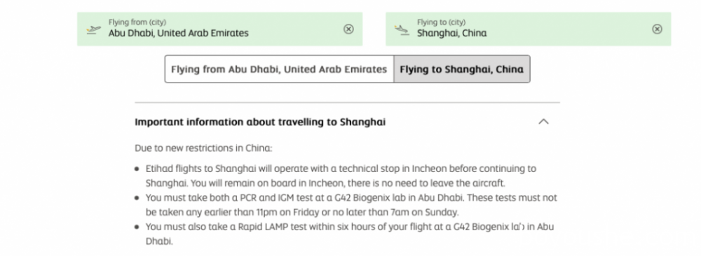阿提哈德航空公司在官网上公布了最新的有关上海航班的重要信息——