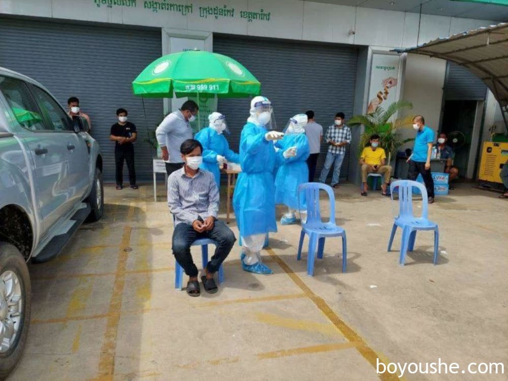 茶胶省隆胶市长贡阿楠8月14日早指出,该市一家小额贷款机构爆发疫情,今日一大早他带领一批医护人员对该机构员工采样检测。