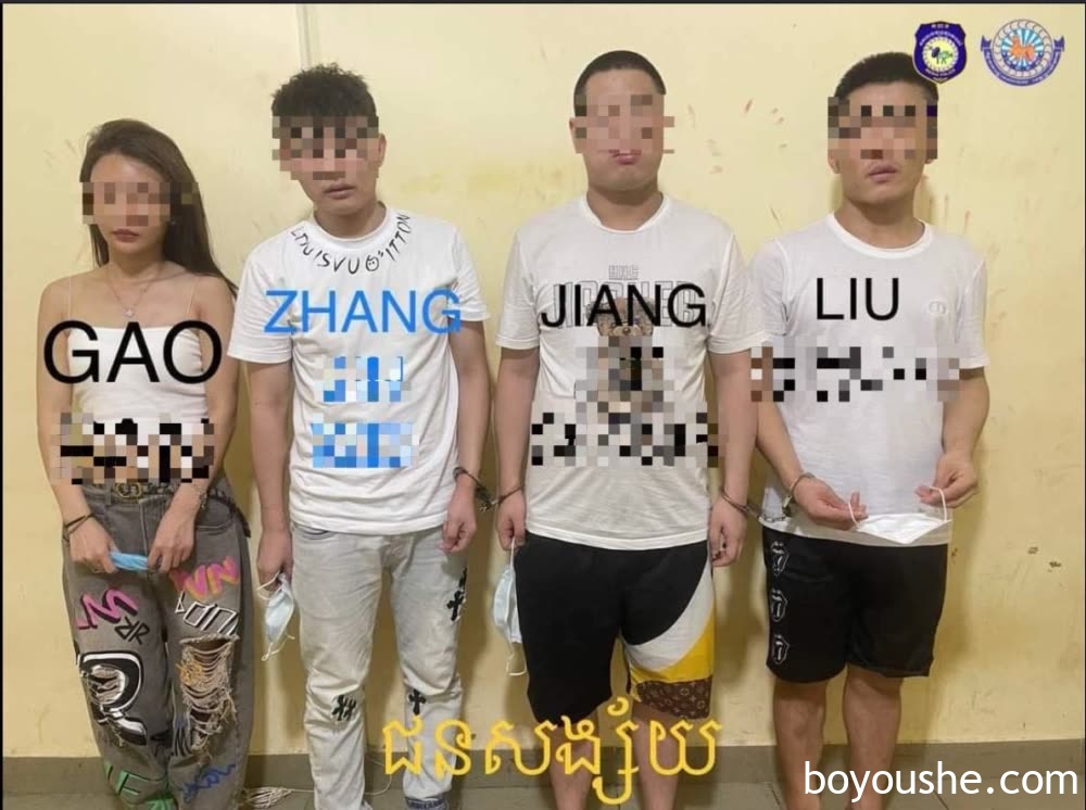西哈努克省警察局展开行动逮捕4名中国男女,他们在街上殴打一名同胞并试图将其抓进车子里面。