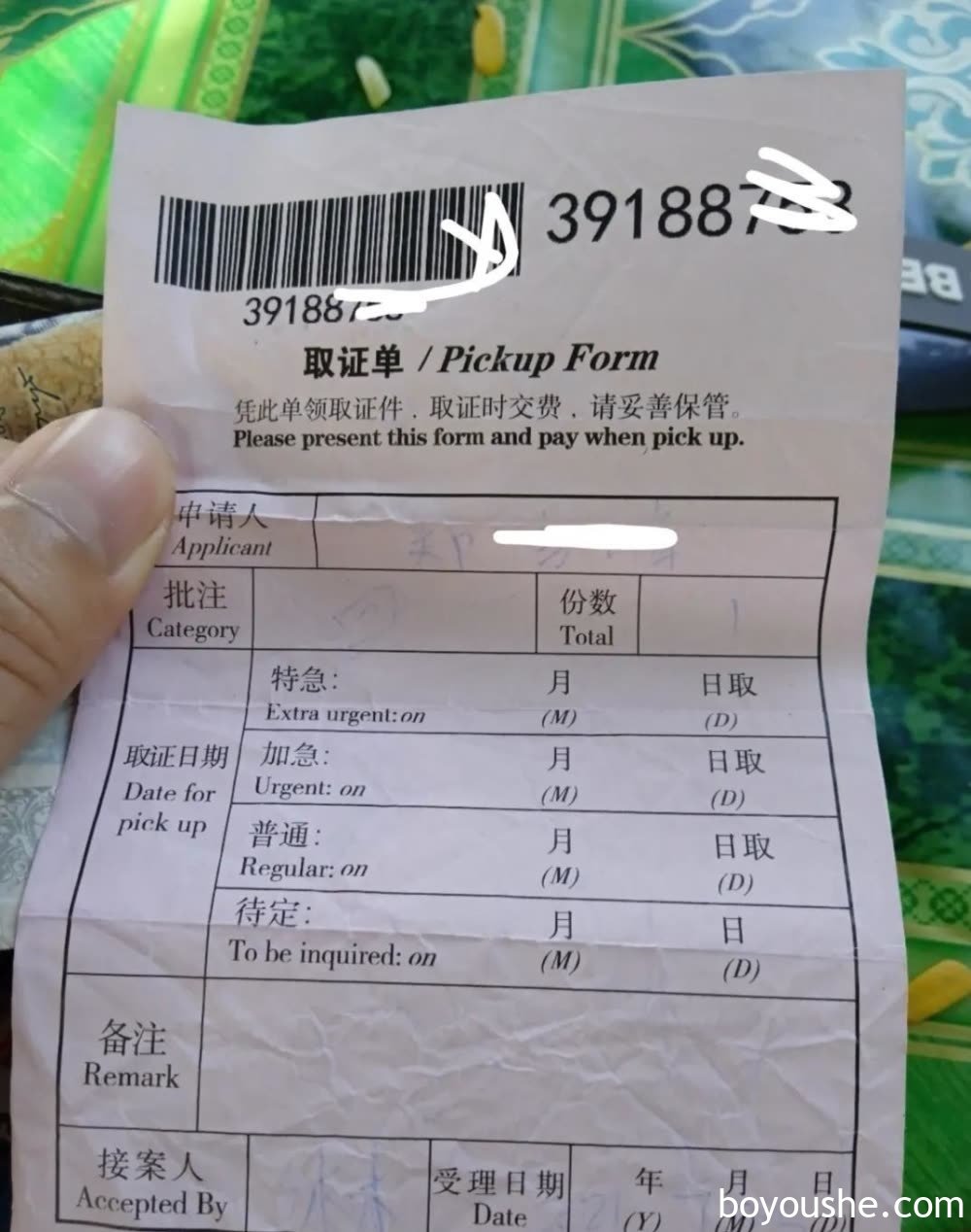 进去办理完成后会拿到一张红色取证单上面会写有领证日期,一般正常情况下回国证明和旅行证都是四个工作日,护照办理周期相对长一些15个工作日,自己或者叫别人帮领取都可以。