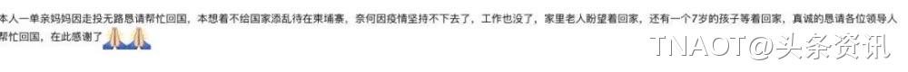 还有一个癌症患者,原本在柬埔寨工作,但发现自己患了癌症,因此想回国和亲人陪伴在一起,但是眼看着回国又更难了。