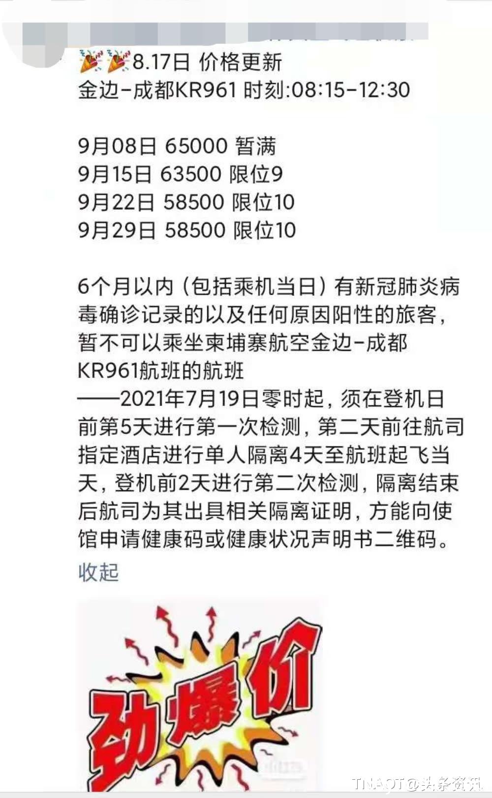 毋庸置疑,这两天在柬埔寨的中国人回国的话题一度引发了热议,买了五六万的高价机票仍被取消,以及9月、10月大量回国航班取消,导致又一批原计划回国的人滞留在柬埔寨。
