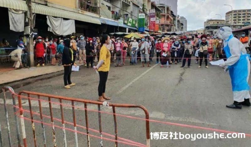 8月30日上午7时,金边市沙南哥市场北边336路段被当局进行封锁,200多名商贩接受医护人员的采样检测,结果发现2人确诊新冠肺炎。此次的封锁和检测工作是因为当局发现德尔塔确诊患者,曾经前往该市场上述路段买东西。