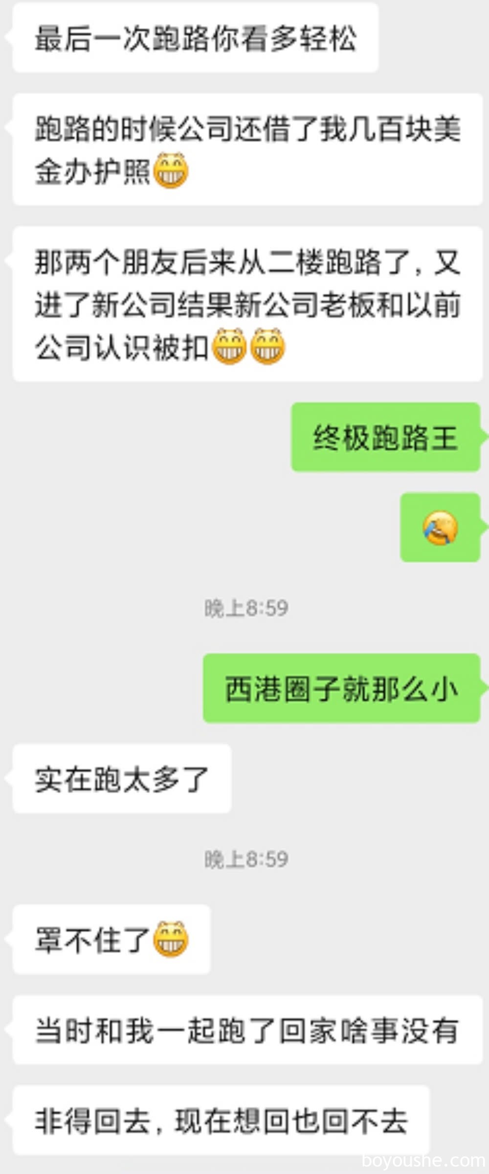 “跑路前这家公司还借了我几百美元办护照,后来我的那两位朋友又从二楼跑路了,结果没想到进的新公司跟老东家认识,因此就被扣下了,你说他们当时要是跟我一起跑回国啥事也没有,现在想回国也回不去了。”