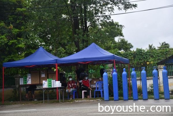 仰光公益组织一名负责人表示:“现在需要氧气的人也没有那么多了,如果去制氧厂,可立即补充氧气,以前都得排队等待,7月份内得去制氧厂轮流排队补充氧气,还有代人排队的情况,每罐的补充价格也高达数十万缅元。