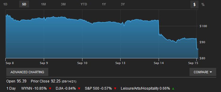 14日澳门方面消息传出后,在澳门拥有业务的美国赌场公司股票应声下跌。