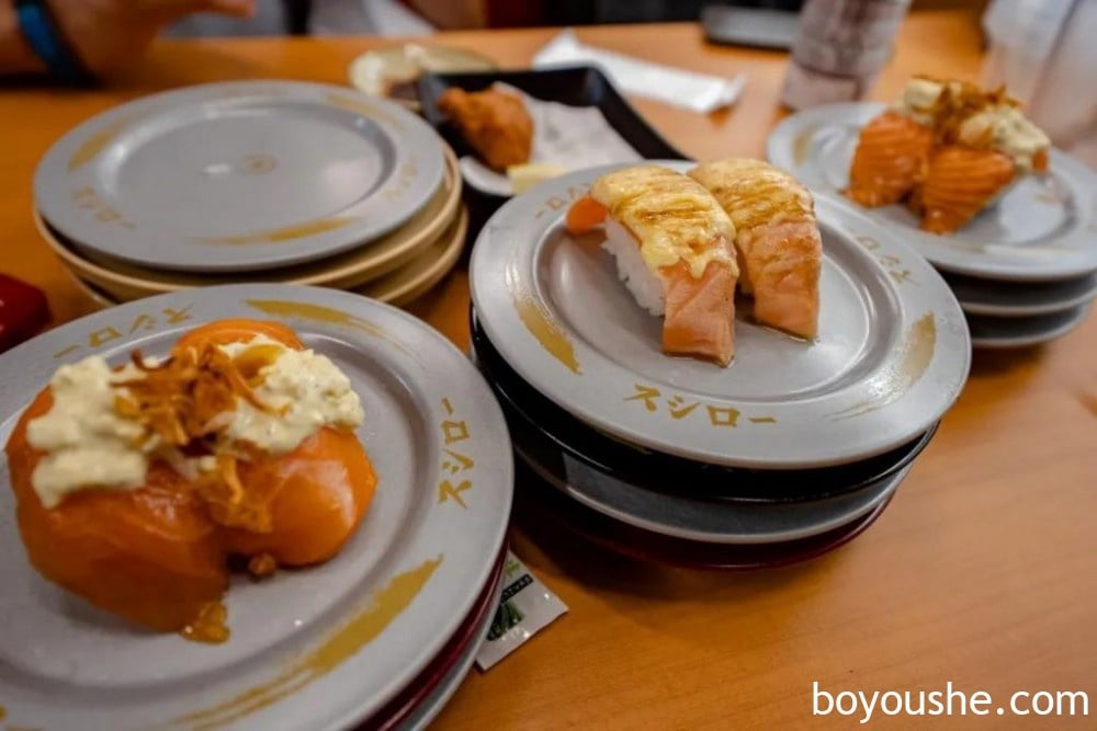 毕竟大牌子,Sushiro的寿司品质真的非常好,在传送带里源源不断地冒出来。每盘寿司都是大厨在后厨新鲜制成,每片寿司上的刺身吃起来都是鲜甜的味道。