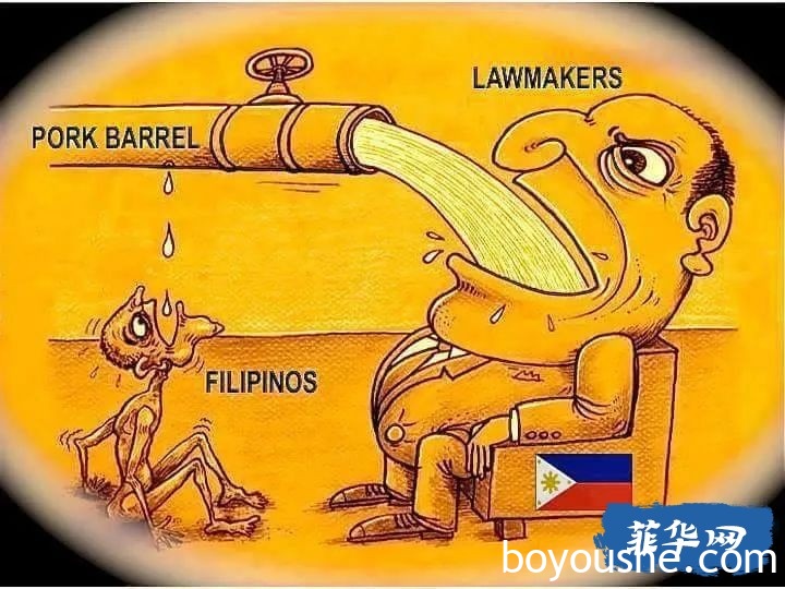菲律宾讽刺参、众议员等立法者,以国家预算自肥的漫画。