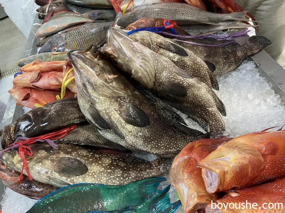 图为当地Thuwal鱼市上拍摄的石斑鱼
