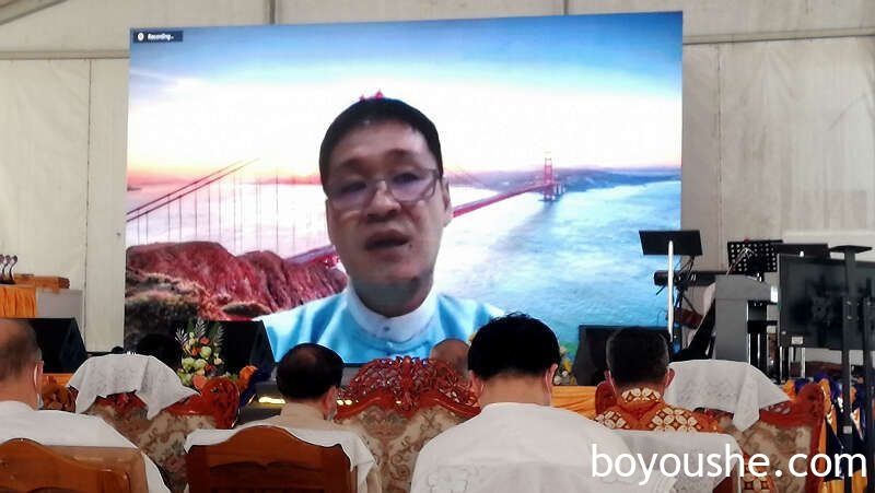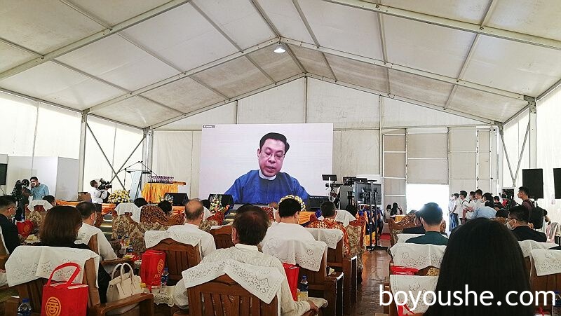 通过视频连线参加会议的有内比都官员、各地侨领,新加坡、日本、韩国、泰国等贵宾