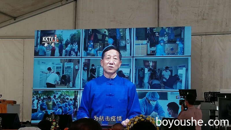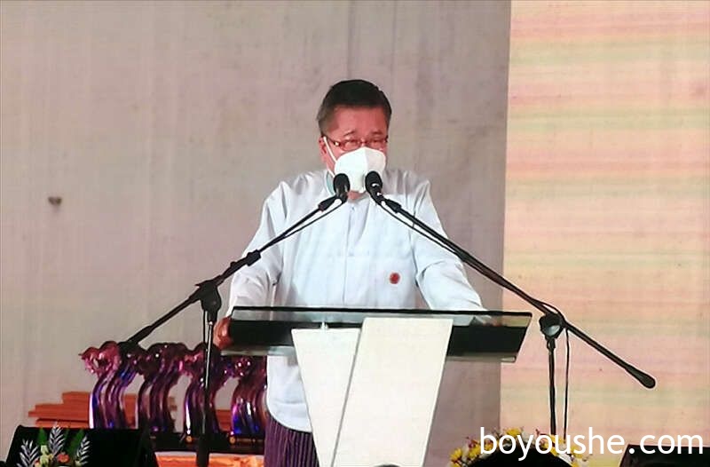 缅甸卫生部联邦副部长吴艾吞在内比都通过视频连线为闭幕式致词,他高度评价缅甸中华总商会自愿自费接种疫苗的工作,并称此举有效支持了缅甸的抗疫工作。副部长致词中说到,中国的疫苗持续不断运抵缅甸,至今已经有2千多万剂了,借此机会感谢中国政府的支持!并希望中华总商会能再接再厉,支持国家的抗疫工作。