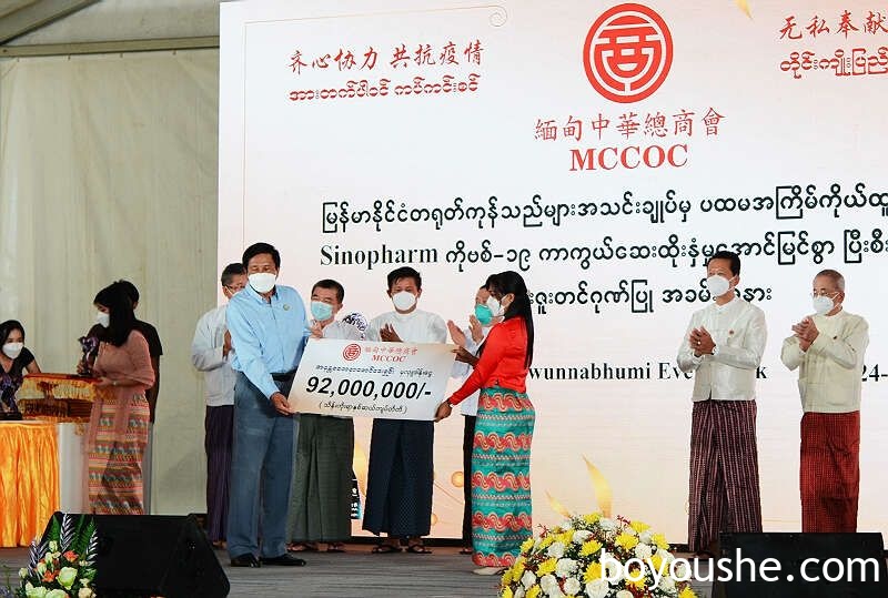 2021年10月24日下午2:00时,“缅甸中华总商会自愿自费接种中国国药疫苗工作圆满成功闭幕仪式暨颁奖大会”在仰光督瓦那布密疫苗接种中心(Thuwanabumi Event Park)举行。