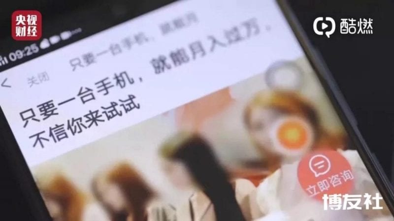 上海点冠网络科技和上海基分文化传播则在趣头条APP上发布7条网络赚钱和2条普通食品违法广告。网络赚钱广告宣称“只需一部手机,30分钟进账1800元”、“10 分钟挣800元,无需任何押金,躺着就能赚钱!”等,诱骗用户点击链接跳转到的博彩网站参与赌博。