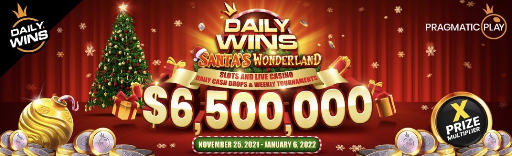 圣诞节期间天天送角子机游戏促销活动推出「圣诞仙境」版,从2021 年11 月25 日至2022 年1 月6 日期间,送出21,000 份现金奖金。该活动还包括真人娱乐场奖金掉落功能和全新游戏「真人甜入心扉」。