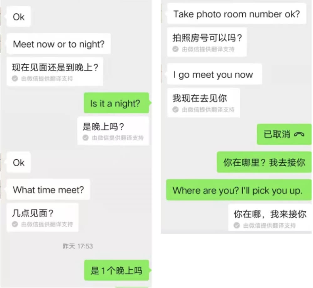 等到过了一个多小时,小美又给他打来视频问他为什么要突然走,并且想尽办法撇清,说跟那几个人不认识,用不标准的中文说着:“我也很害怕之类的”。两人说着说着,在后面那个三十多岁的中国人应该是生气了,就拿过小美的手机并且猖狂的露脸威胁了小东几句,说道:“今天算你命好。”