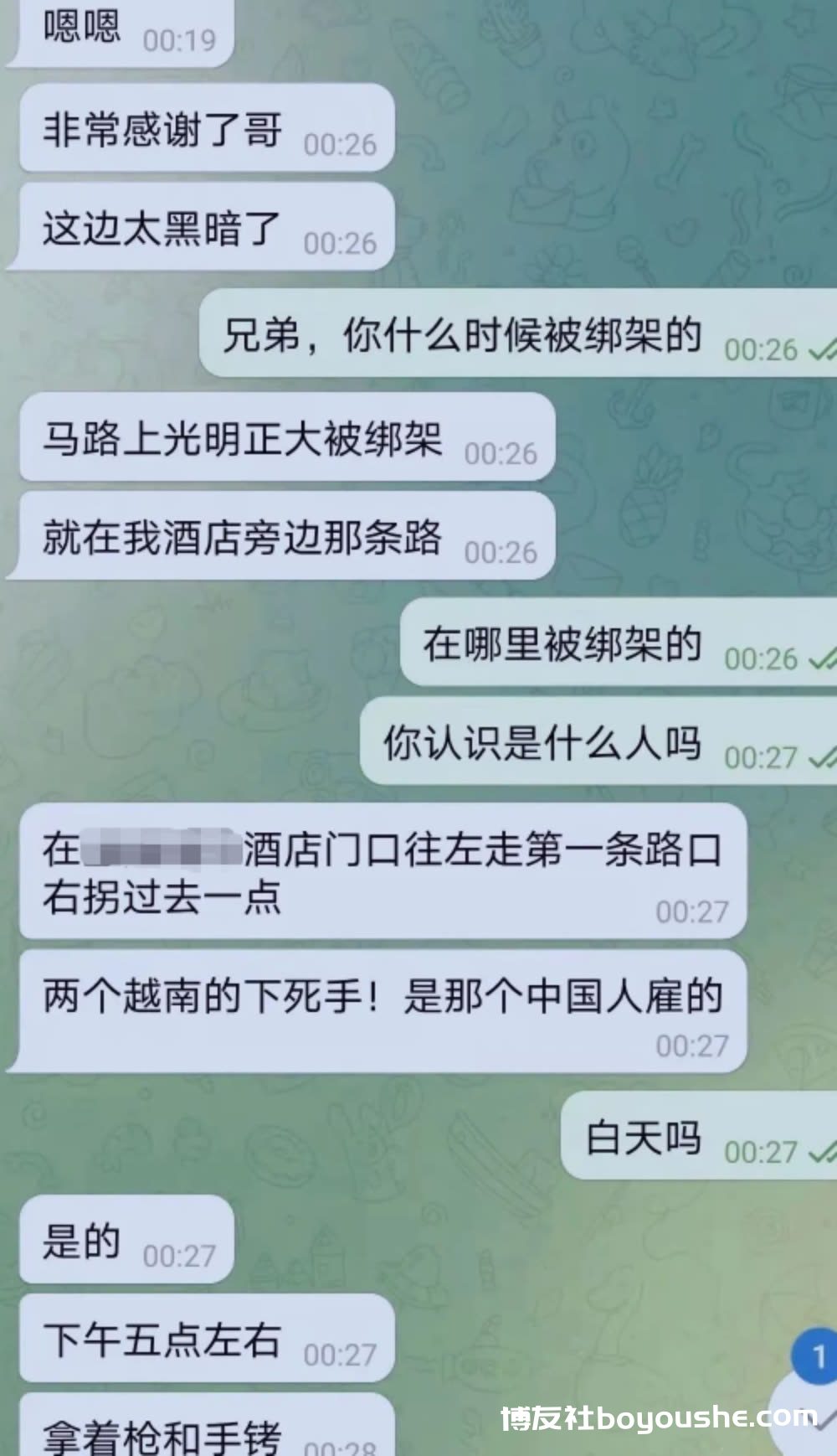 这名读者提到,上周在金边发生的两起绑架案件,一起是他在微信群中看到群友聊天记录和提醒后才知道的,另一起则是有朋友向他借钱赎身求救后才知晓。
