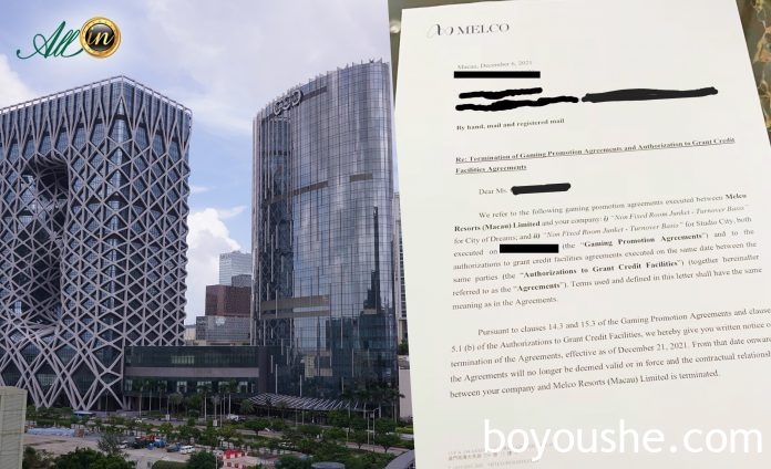 据消息指出,设于新濠天地的广东、德晋、京城及励盈贵宾厅,均收到相关通知,须在该日期前停运及结束与新濠的合作。