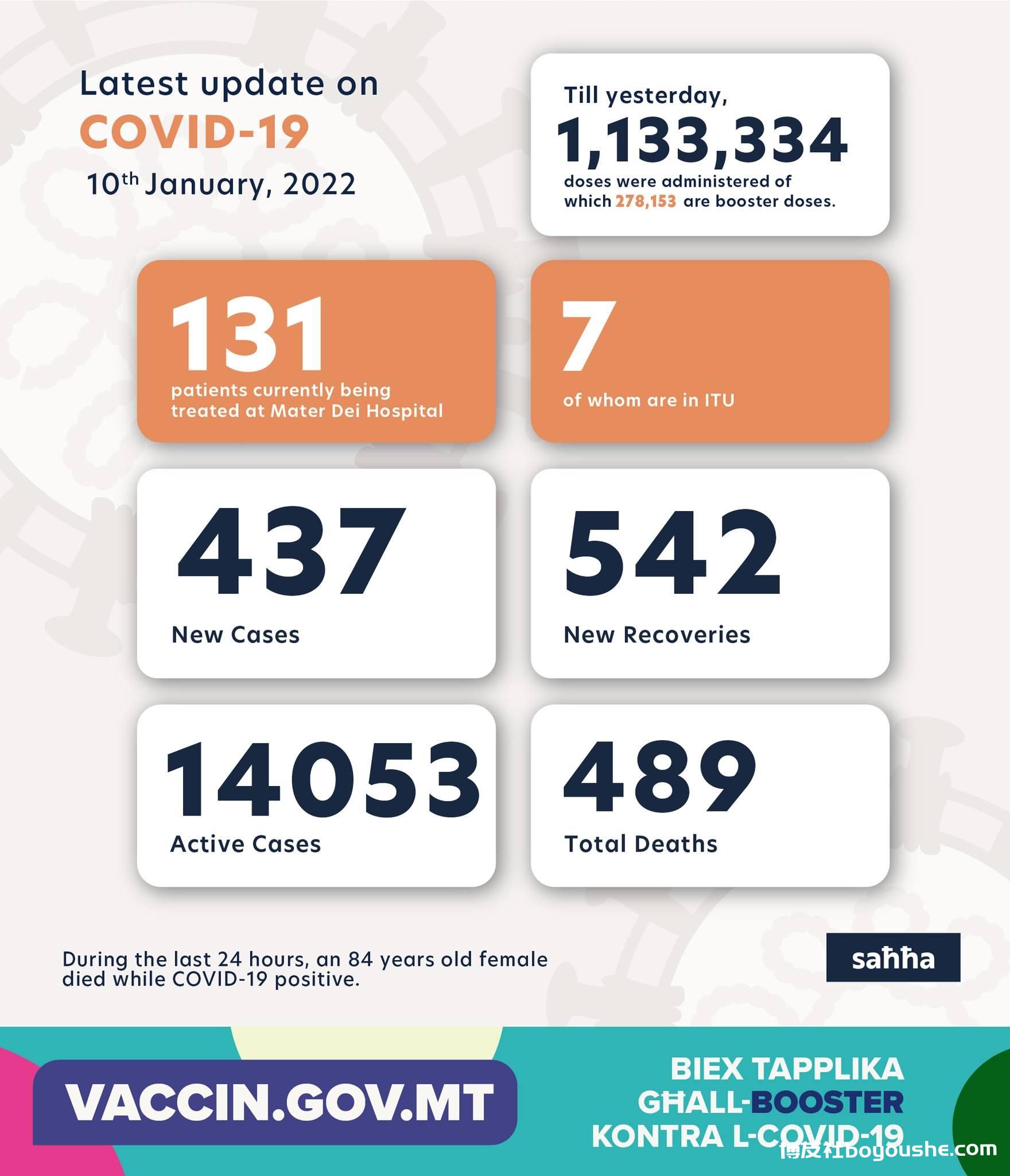 共有 542 名患者康复,马耳他共有 14,053 例活跃病例。