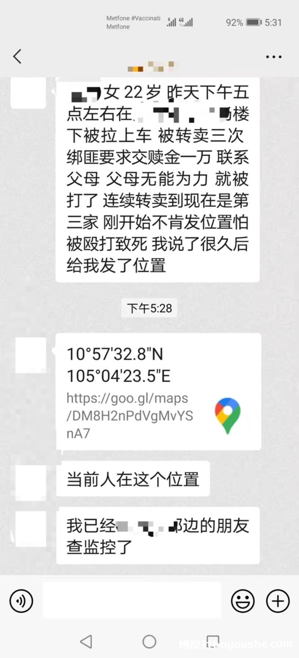据爆料人收到的地址显示,目前这名中国女子已经被转卖至财通。