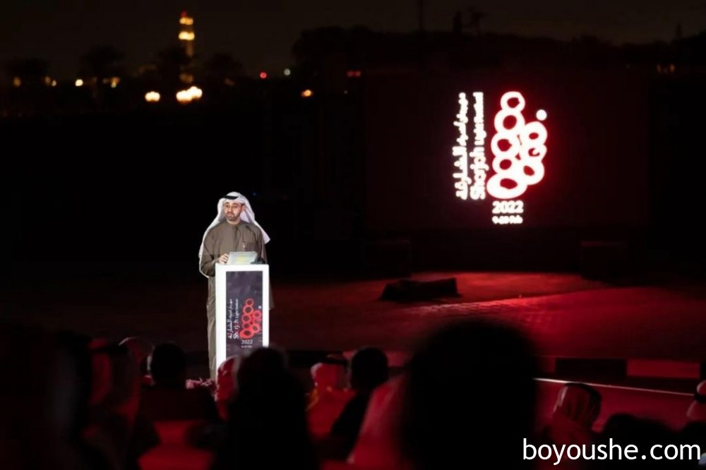 开幕式包括一场美轮美奂的灯光秀,照亮了大学市政厅大楼,它是沙迦最著名的地标建筑之一,体现了沙迦对教育和遗产的承诺。开幕式讲述了沙迦的过去和重要的里程碑事件,强调了海洋和图书馆在日常生活中发挥着重要作用。随后,开幕式将视角转移到酋长国的现在,突出了它在教育、艺术、天文、建筑、通信和环境方面的成就。