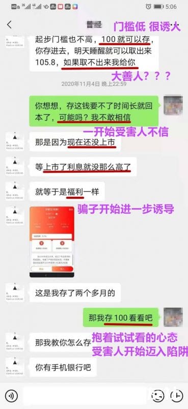 很多受害人想要挣快钱,骗子通过利用受害人想要投资赚钱的心理,诱导受害人在虚假平台进行投资。