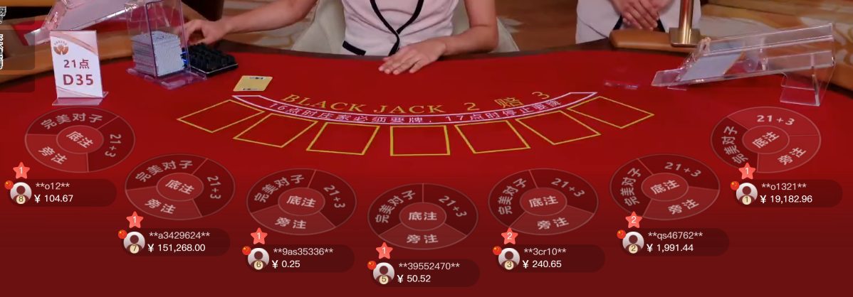 系统支持玩家同时下注多个玩法,增加赢钱机率。投注主赌注后(底注或旁注),可以投注边注玩法(完美对子,21+3)。