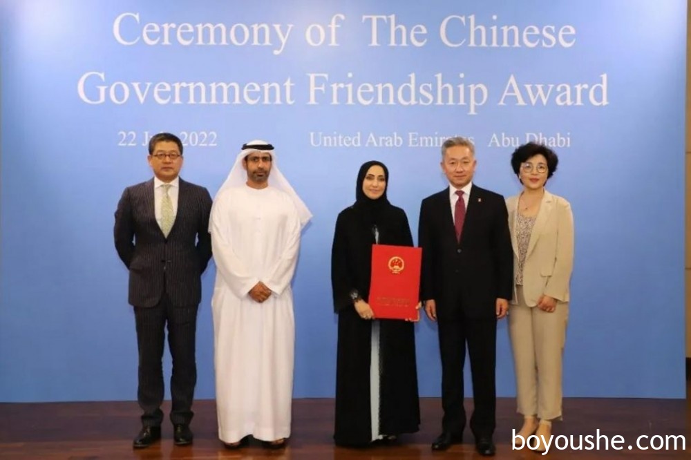 纳瓦勒女士感谢中国政府授予崇高荣誉,表示荣获此奖离不开千千万万志愿者的积极参与,离不开中国驻阿使馆和阿卫生部门的大力支持,离不开G42集团、国药集团、哈雅集团的全力配合。这一奖项源于大家的辛勤付出,是阿中友谊的生动写照。