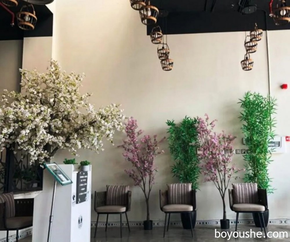 这家店从早上4点半开到下午2点,专门供应早餐。店面上下都为透明玻璃结构,外部虽然并无特殊之处,但进入餐厅,却发现有很多假花装饰。由于沙特的气候很难养花养草,缺水缺绿色,假花就成为许多沙特店内的常见装饰品了。