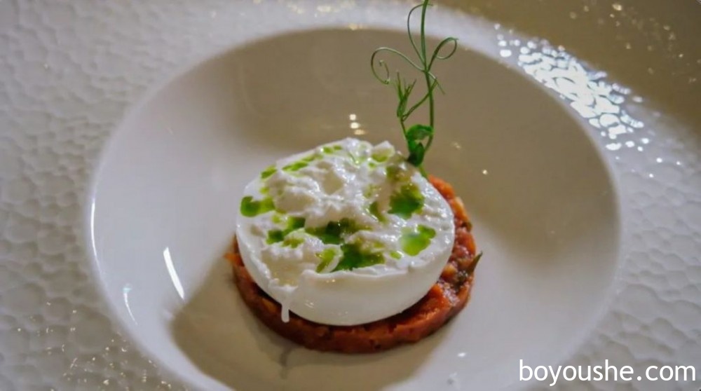 这道牛颊肉煎至焦香,各类鲜蔬加入西红柿糊,拌炒后加面粉炒香,再倒入红酒,待酒精挥发,加牛颊肉高汤,小火炖煮约12小时,可谓一道功夫菜。单吃入口虽说牛肉浓郁的香气还是表现得很好,但口感上会有些干柴,建议搭配土豆泥一起入口,会更加柔和顺滑。