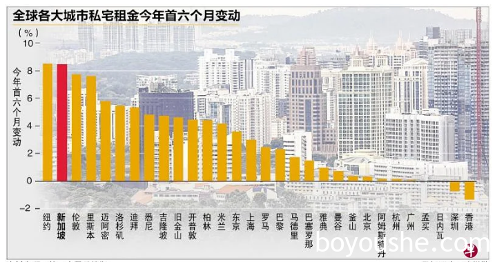 根据第一太平戴维斯(Savills)最新的“世界城市指数”(Global Cities Index)报告,全球主要30个城市的优质住宅租金今年首六个月平均上扬3.1%,这主要是去年底主要城市的边境重新开放,许多人回返这些城市,强劲需求推动租金增长。