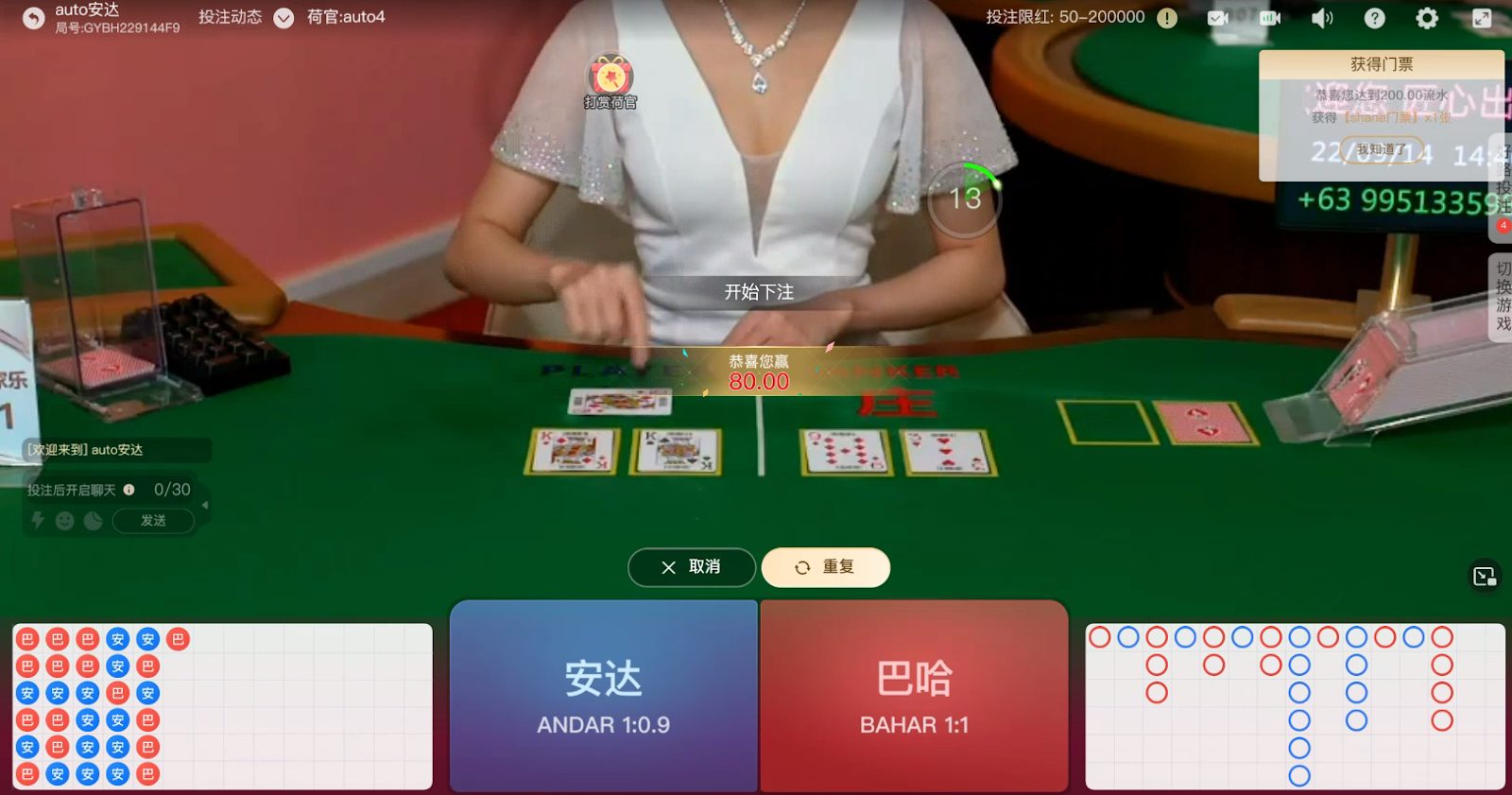 一番操作下来不难发现,安达巴哈游戏极其简单,容易分析,想要轻松学会投注技巧又想赚钱的,到亚太厅E28桌台投注准没错!