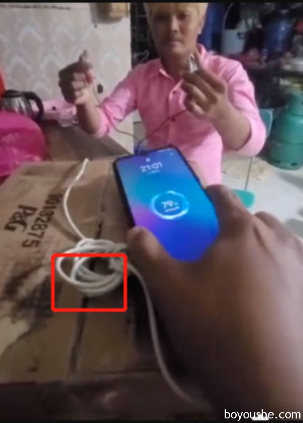 但是,有眼尖的网友发现,有一根手机的充电线似乎链接进了放手机的箱子里,并且网友们也怀疑为何要把线弄成杂乱的一团,如果真有这个能力的话,应该展现的更真实一点。