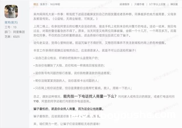 阿里高层蒋芳在公司发送内部邮件给员工,呼吁大家紧急宣传,严防诈骗!
