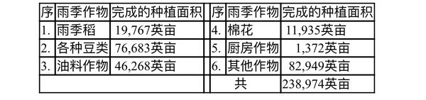 目前实皆县区所完成的雨季作物种植工作如下表: