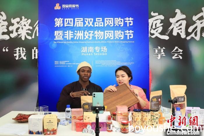 在第四届双品网购节暨非洲好物网购节(湖南专场)期间,非洲友人现身直播间带货。 自贸长沙片区雨花管委会 供图
