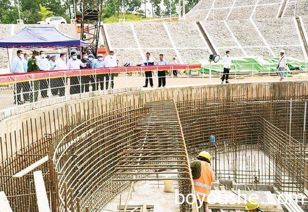 电力部联邦部长U Thaung Han,掸邦邦政府首席部长Dr. Kyaw Tun,东中部军区司令员Myo Min Tun少将及有关单位负责人等,于10月23日前来视察了该上景唐水电厂的建设情况。水电局及第五建设组的负责人向联邦部长等一行人介绍了水电厂的建设进度,同时也介绍了已建成完毕并在正常运转的景唐水电厂的运作情况。景唐水电厂装机容量为54兆瓦,已运转多年,生产的电力供给掸邦南部各城镇。