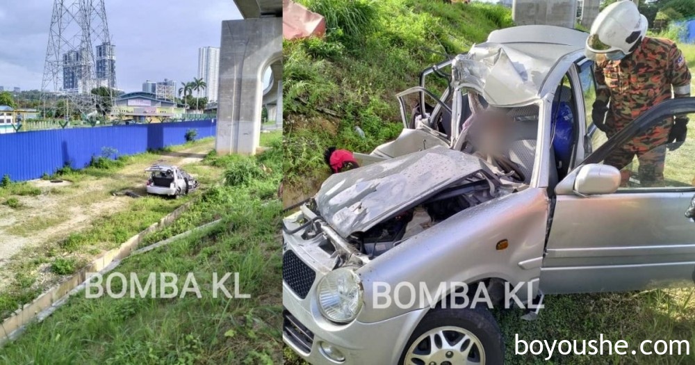 辆第二国产车灵鹿疑失控撞路障冲下坡,严重撞毁,车内26岁女性司机当场毙命,当局正调查此事故肇因。