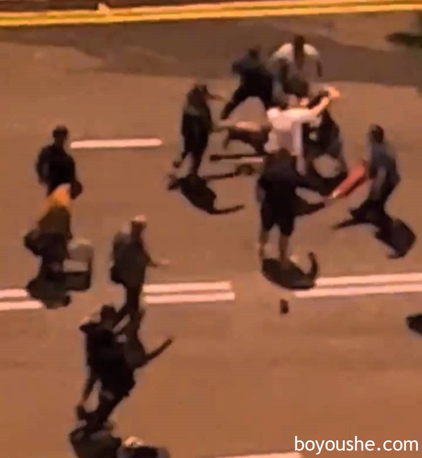 视频画面显示,一名男子遭一群为数约10人的男子按在地上拳打脚踢,有者更使用三角锥狠砸男子头部,造成男子头部、面部及身子多处受伤。
