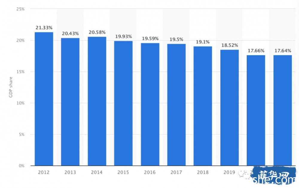 2012-2021年制造业生产值占菲律宾GDP的比重