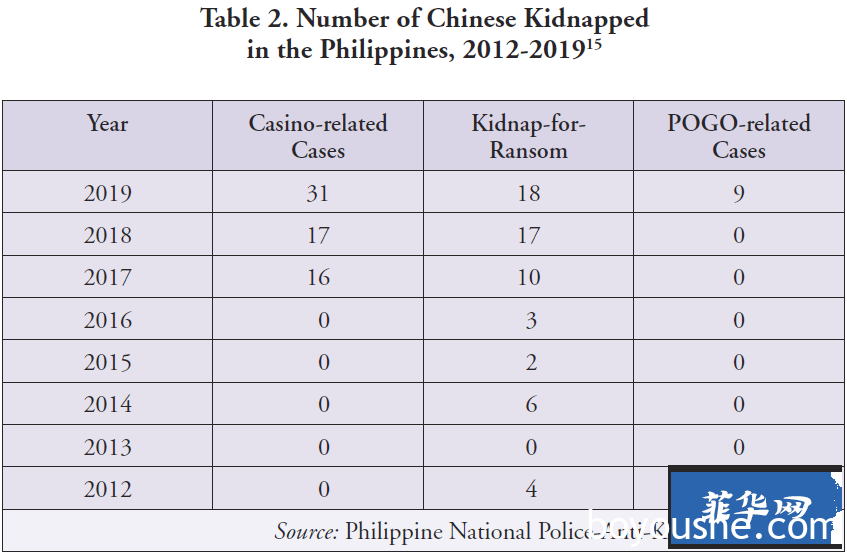 表2 2012-2019年在菲中国公民被绑架人数 数据来源:Philippine National Police – Anti-Kidnapping Group
