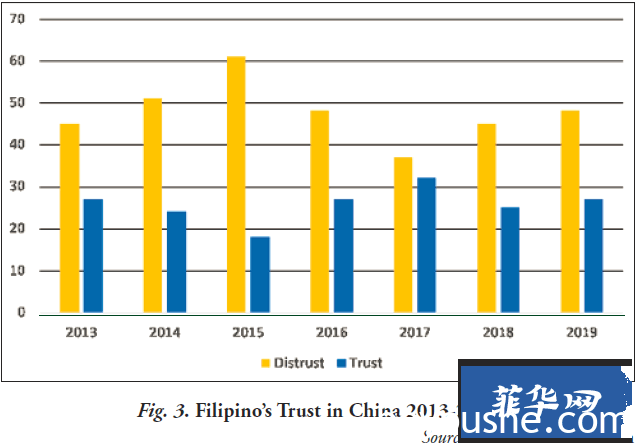 图3 2013-2019年期间菲律宾人对中国的信任度 数据来源:Social Weather Stations