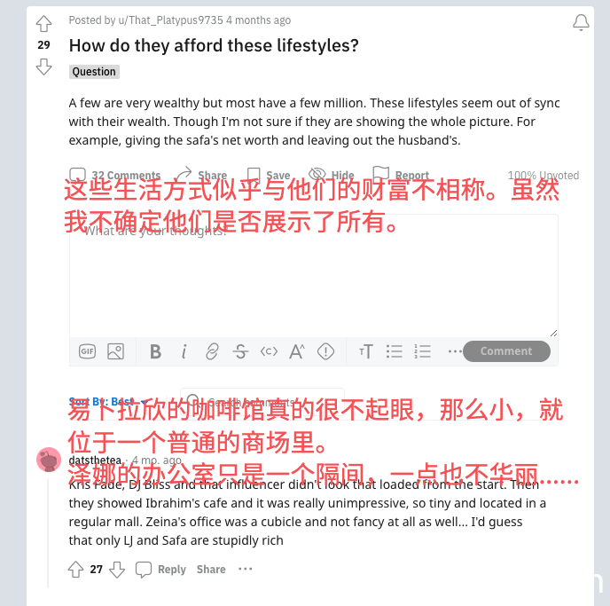 无数本地吃瓜群众表示 —— 这TM也太少了~对不起剧中“百万富翁”的身份。除了片酬被人吐槽,这些所谓富豪们的真实身家也受到了网友们的质疑。有些观众和媒体都表示这些富豪所拥有的资产,应该负担不起这种奢华的生活方式,怀疑剧里出现的跑车、珠宝都是租的。